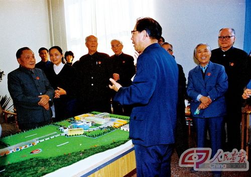 1984年,谢家麟向邓小平同志汇报北京正负电子对撞机(BEPC)设计方案。